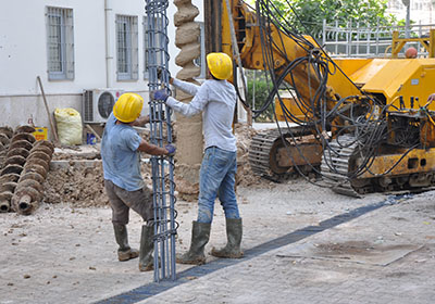 Taşıma gücü düşük, oturma problemleriyle karşılanması beklenen projelerde, düşey yükleri taşıtmak için donatılı kazık uygulaması yaygın olarak kullanılır. Burada dikkat edilmesi gereken unsur düşeyden gelen yüklerin kazık kapasitesini kesinlikle geçmemesi gerekmektedir. Proje müellifinin bunu gözeterek, proje dizaynı yapması gerekmektedir.